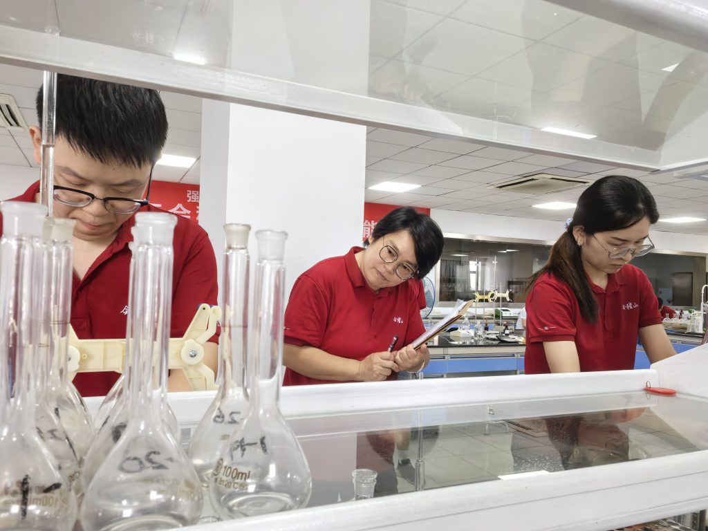 工作中遇到技術(shù)難題時(shí),她從不退縮,而是迎難而上、潛心鉆研。此前,企業(yè)開發(fā)新款氣泡黃酒,檢驗(yàn)環(huán)節(jié)面臨樣品消泡不完全影響,檢測數(shù)據(jù)精準(zhǔn)度無法保障。為破解這一痛點(diǎn),她查閱各類文獻(xiàn)資料,反復(fù)試驗(yàn)不同設(shè)備效果,最終確定購置數(shù)顯振蕩器,通過調(diào)整震蕩速度與時(shí)間來優(yōu)化樣品處理效果,經(jīng)過無數(shù)次調(diào)試,成功找到完全消泡的有效方法,該方法既確保了檢驗(yàn)結(jié)果的準(zhǔn)確性,又大幅提升產(chǎn)品品的穩(wěn)定性,切實(shí)為企業(yè)節(jié)約生產(chǎn)成本,以專業(yè)攻堅(jiān)之力筑牢品質(zhì)根基。日常工作中,她帶領(lǐng)團(tuán)隊(duì)開展技能比武、隱患排查,推動檢測工作標(biāo)準(zhǔn)化、規(guī)范化,用實(shí)干與擔(dān)當(dāng),錘煉出過硬的匠心本領(lǐng)。